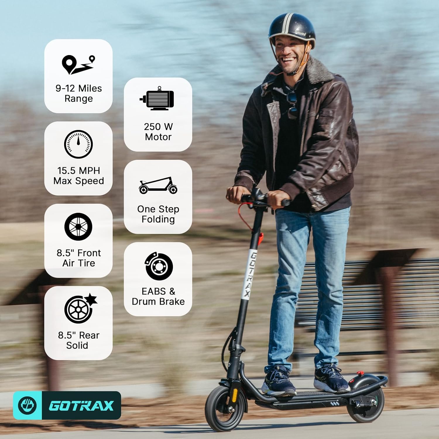 Gotrax Electric Scooter for Adults, Max 12 Mile Range & 15.5Mph by 250W Motor, 8.5″ Front Air & Rear Solid Tires, Max Load 220lbs & Big Display with Cruise Control, Foldable EScooter EABS & Drum Brake